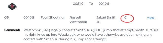 第五次是錯判,發(fā)生在距離加時賽結(jié)束還有10.5秒。裁判報告指出,威斯布魯克對小史密斯的跳投完成了一次合法干擾。小史密斯在投籃時抬起右膝撞到威斯布魯克,而后者原本完全可以在防守跳投的過程中避免與小史密斯產(chǎn)生任何身體接觸。所以不該吹威少的防守犯規(guī),同樣是火箭獲利,國王吃虧。