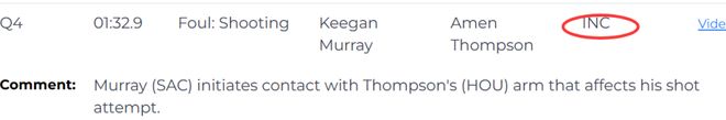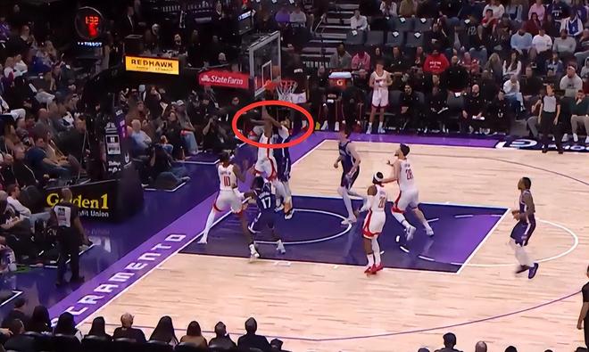 第二次是漏判,發(fā)生在距離第四節(jié)結(jié)束還有1分32秒,國王的穆雷在防守時與火箭的湯普森的手臂發(fā)生接觸,干擾了后者的投籃動作,這應(yīng)該吹防守犯規(guī)。這次漏判是國王獲利,火箭吃虧。