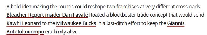 洛杉磯快船憑借一波酣暢淋漓的6連勝似乎讓球迷看到附加賽的曙光,倫納德6連勝期間場均39分,宣告戰(zhàn)神回歸,但是就在今天,快船慘敗凱爾特人再度讓球迷回歸現(xiàn)實。倫納德提前拿出季后賽級別的出場時間與進(jìn)攻強(qiáng)度,雖換來了短期勝利,卻暴露持續(xù)性不足的問題,快船本賽季想要染指季后賽,真的困難重重。就在此時,Bleacher Report內(nèi)部人士丹·法瓦萊提出的一筆6換1交易方案,如驚雷般響徹聯(lián)盟,有望重塑快船與雄鹿兩支處于十字路口的球隊命運——將倫納德送往密爾沃基雄鹿,為字母哥的爭冠時代注入強(qiáng)心劑,而快船也能借此完成戰(zhàn)略轉(zhuǎn)型,開啟新的篇章。